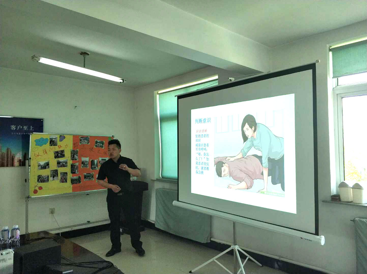 在全體工積極參與下培訓(xùn)活動(dòng)圓滿完成,通過培訓(xùn)學(xué)習(xí)了解了CPR現(xiàn)場緊急救護(hù)知識(shí)(如人工呼吸、中署急救、創(chuàng)傷、出血、機(jī)械損傷、粉塵、觸電等自救);