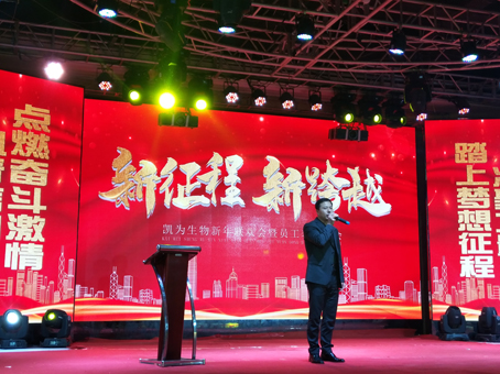 公司總裁王鐵良先生首先總結(jié)公司十余年的奮斗歷程,“從冰雪到綠原,那是冬天走向春天的路,從失敗到成功,那是披襟斬棘闖出來的路,凱為人十余載風(fēng)雨同舟,不負韶華。過去的一年是我們公司創(chuàng)新業(yè)績、重振區(qū)域品牌的一年,2019年公司不僅實現(xiàn)了銷售收入同比增長,而且公司新增養(yǎng)殖基地三個,新建培訓(xùn)中心已納入養(yǎng)殖服務(wù)板塊,新建檢測中心納入客戶服務(wù)體系。實踐證明:我們一直用凱為的價值觀衡量我們的行動向共同美好的愿景持續(xù)奮進!正是因為你們的付出和攜手奮進才有今天的凱為。我代表公司感謝所有員工的努力和敬業(yè),同時更要感謝你們的家人,正是他們默默的支持和奉獻,使你們能全身心的投入工作,在此,我衷心的祝愿你們健康快樂!萬事如意?。 ?br />