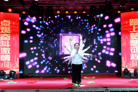 在聯(lián)歡會的現(xiàn)場,華麗舞臺燈光璀璨,背景制作喜氣祥和,一派喜迎新春的美好盛況,那一首首悅耳動聽的歌曲,那一段段優(yōu)美豪放的舞蹈,那一個個風(fēng)趣搞笑的互動小品.......在舞臺上傾情巨獻,精彩紛呈,掌聲與喝彩此起彼伏,現(xiàn)場氣氛熱烈、喜氣、祥和,凱為人的魅力與風(fēng)采在這一刻光芒四射,凱為人的才藝在這一刻八仙過海??!